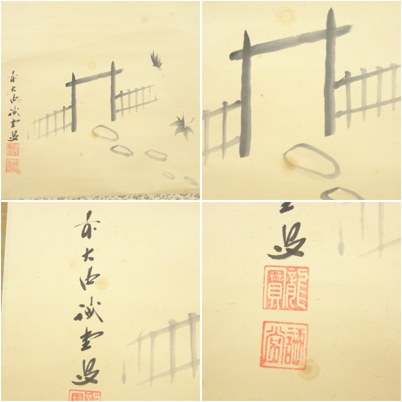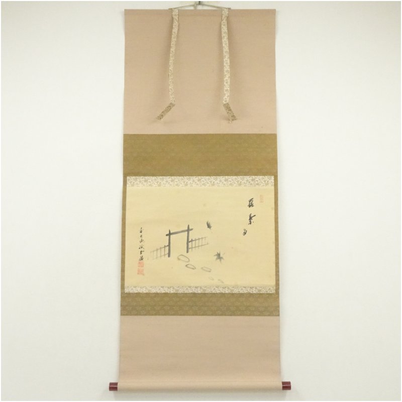 大徳寺 藤井誡堂筆 「落葉多」風景画賛 肉筆紙本掛軸(共箱) [13-250702c-008a]