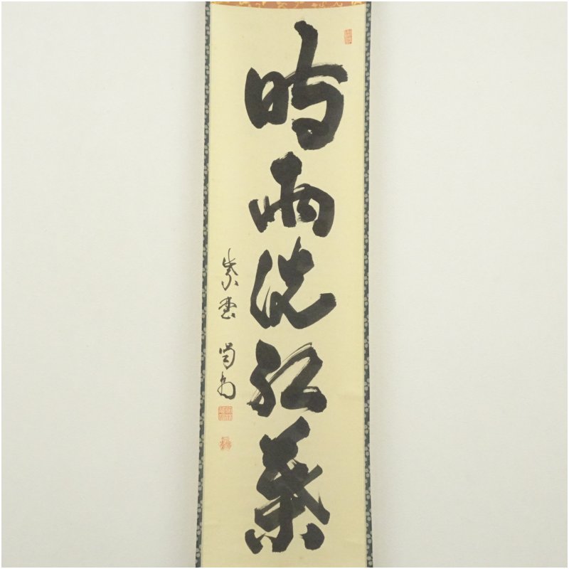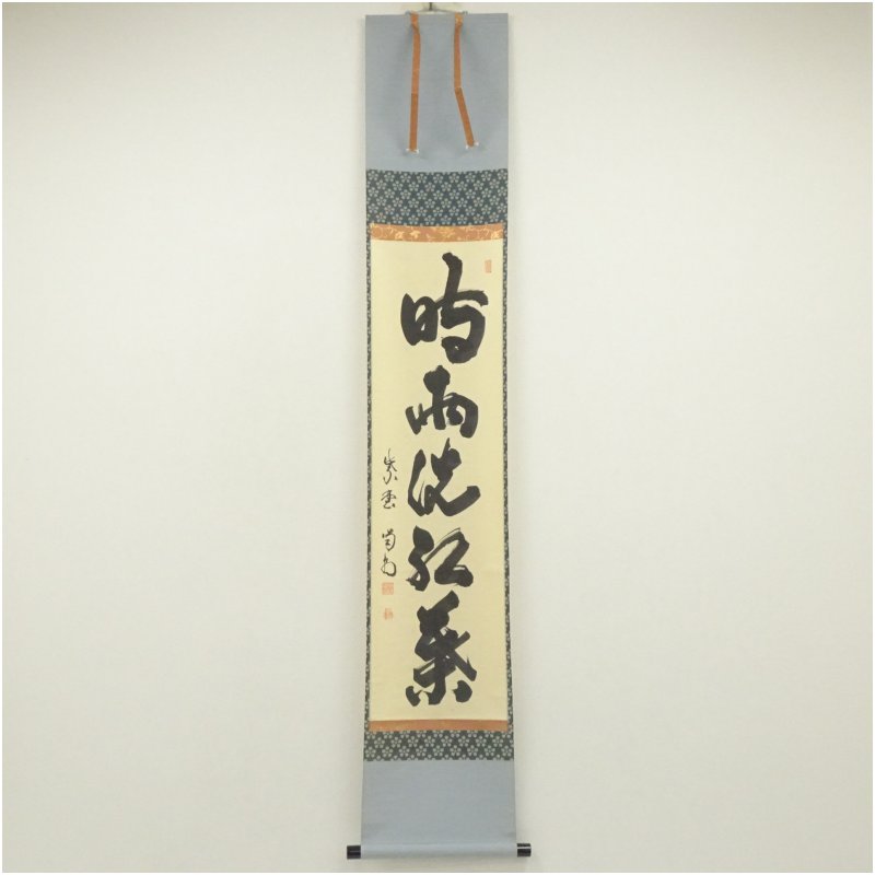 大徳寺 細合喝堂筆 「時雨洗紅葉」一行書 肉筆紙本掛軸(共箱) [13-250702c-013a]