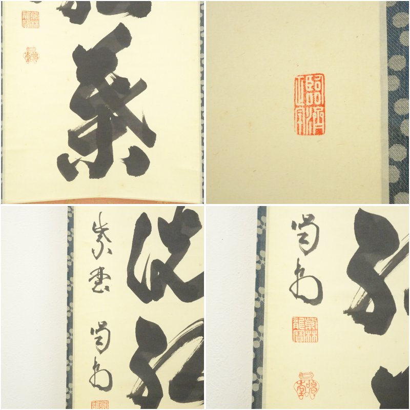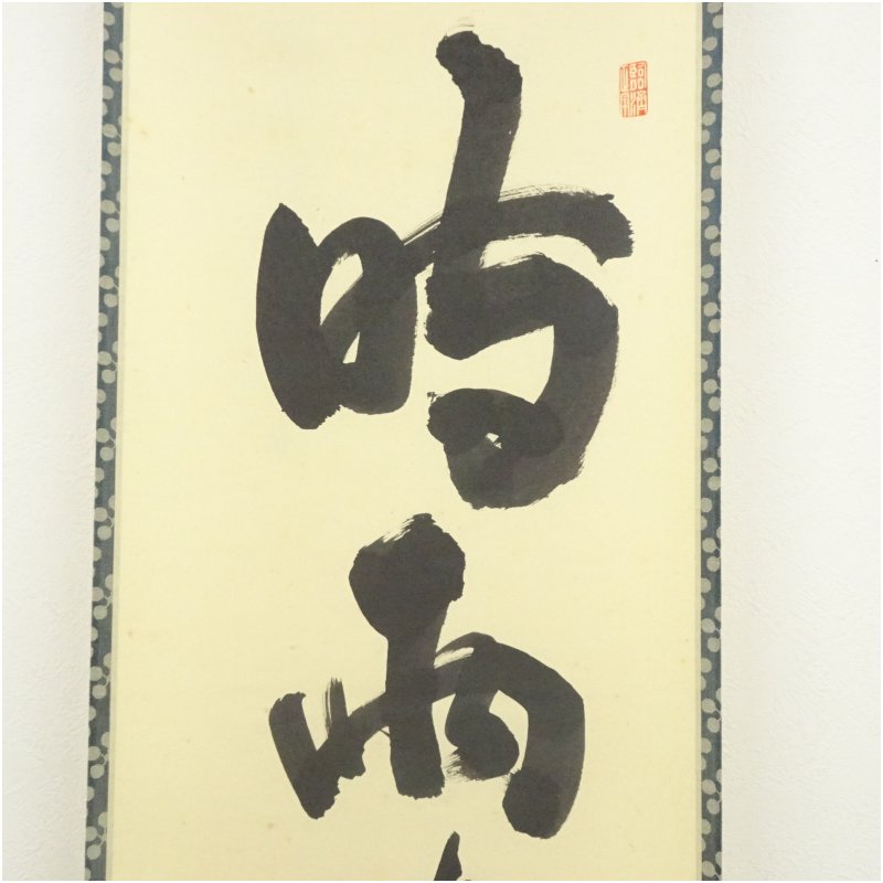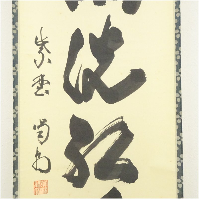 大徳寺 細合喝堂筆 「時雨洗紅葉」一行書 肉筆紙本掛軸(共箱)