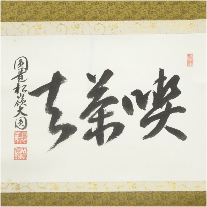 円覚寺 大圓俊哲筆 「喫茶去」横物 肉筆紙本掛軸(共箱) [13-250702c-015a]