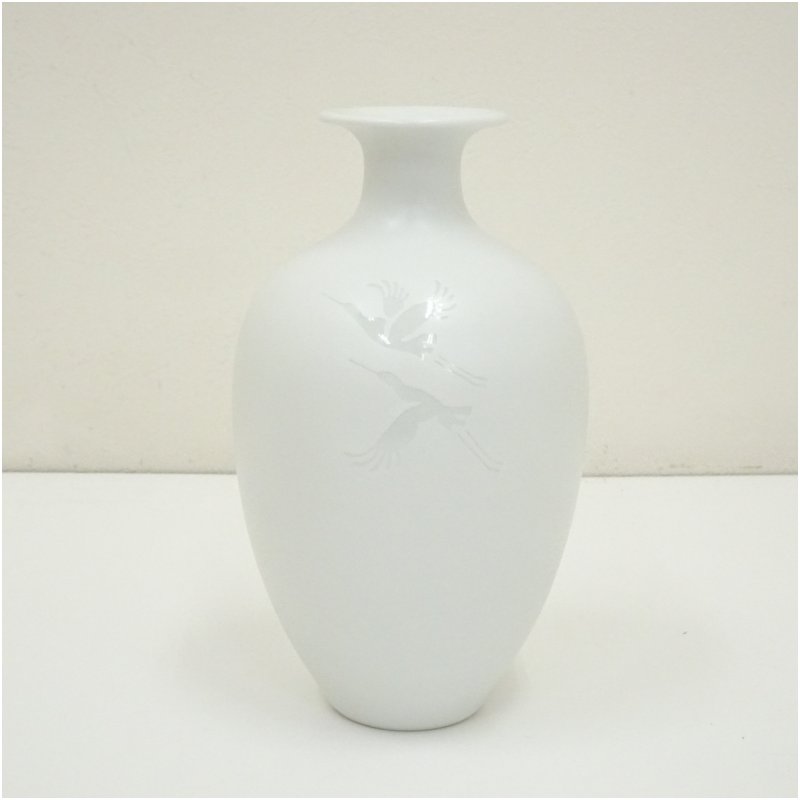 出石焼 永澤永信造 白磁双鶴花瓶(共箱) [13-250703c-005a]