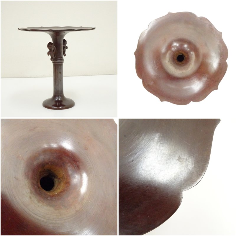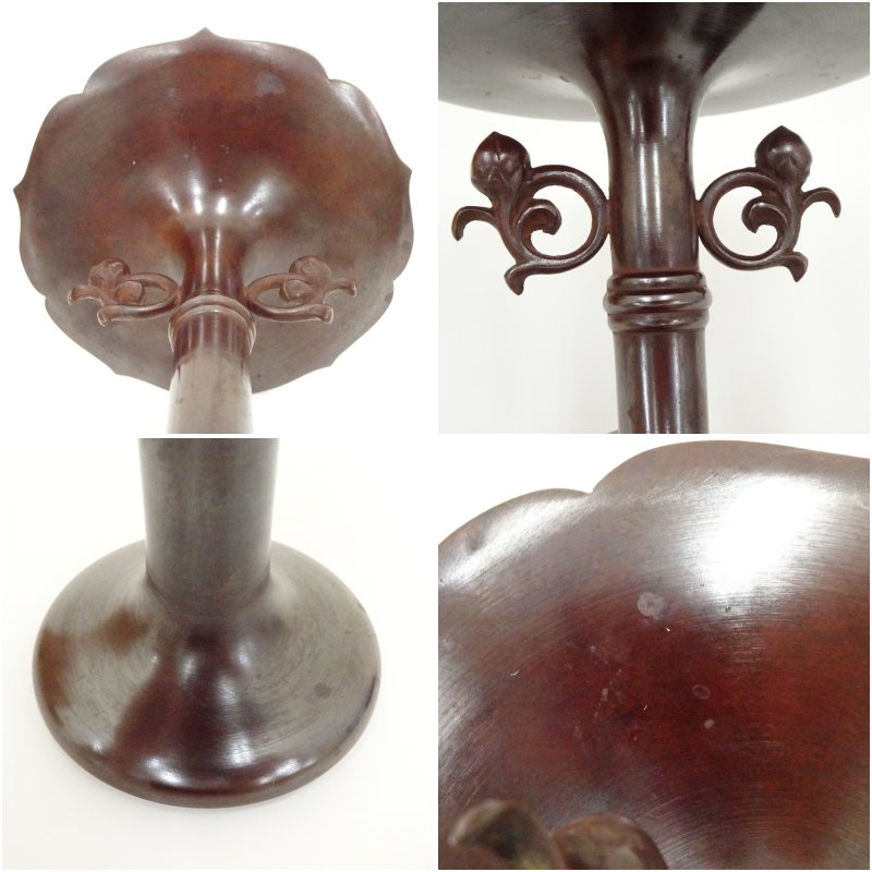 八尾祥栄造 鋳銅桔梗形一文字花入(共箱)