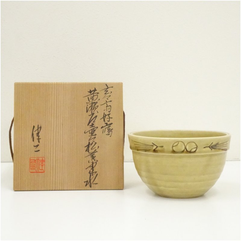 水野健二造 玄々斎好写黄瀬戸壷々松葉建水(共箱)