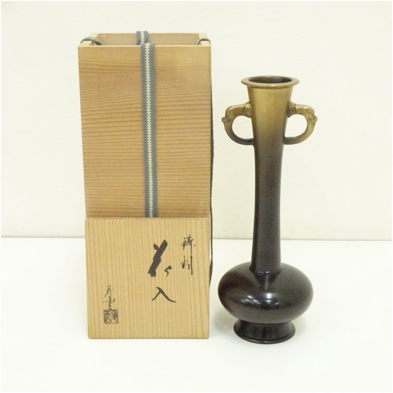 昇雲造 鋳銅花生(共箱)