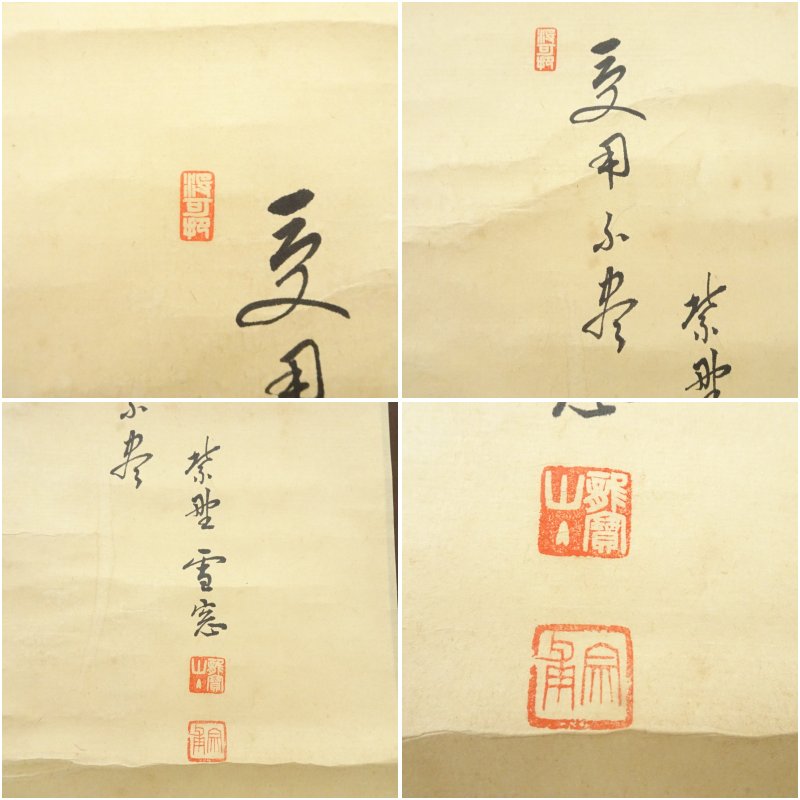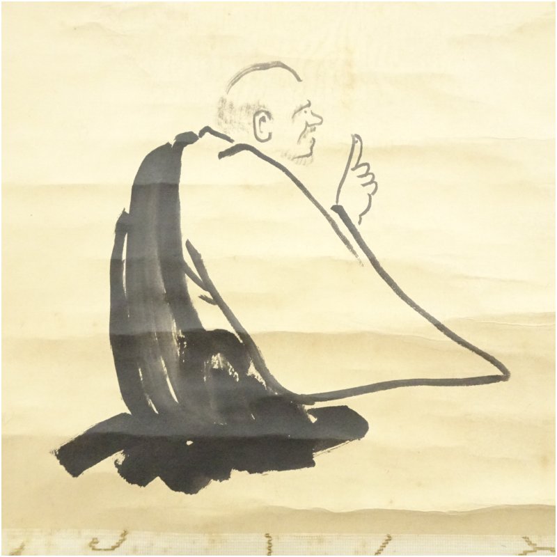 大徳寺 小田雪窓(宗甫)筆 「受甲不盡」横物 愚胝画賛 肉筆紙本掛軸(共箱) [13-250704c-007b]