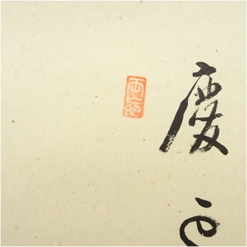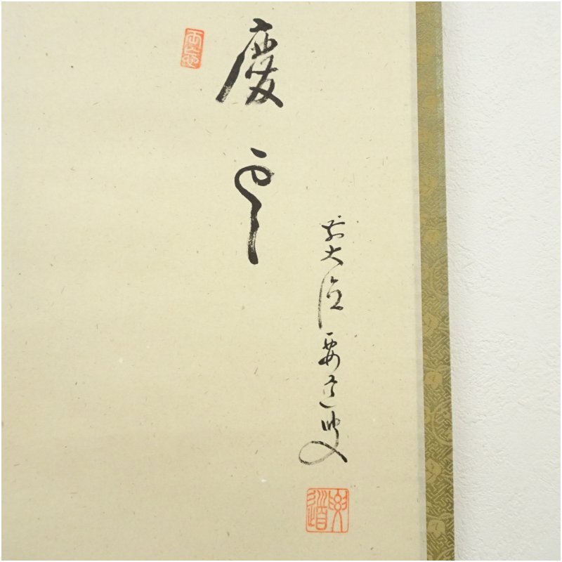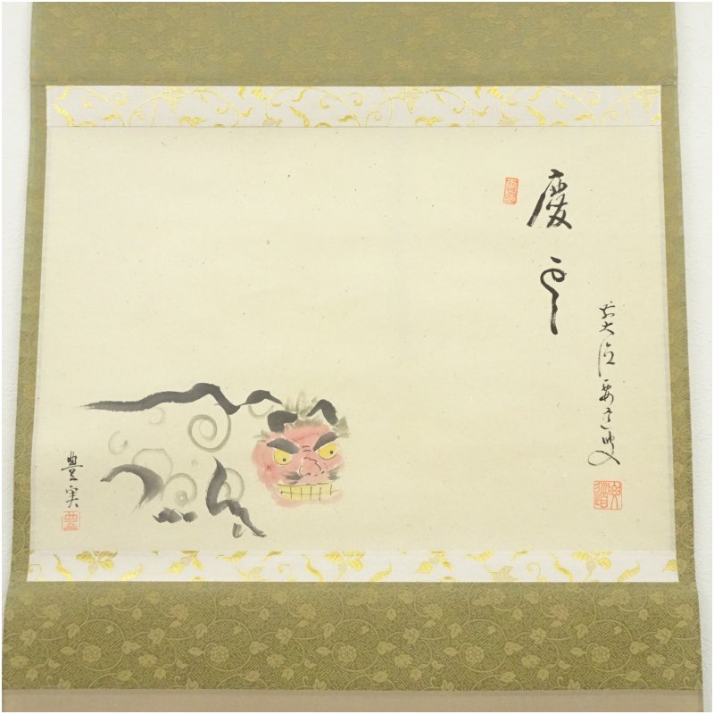 前大徳 雪尾要道筆 「慶事」豊実筆 獅子舞画賛 肉筆紙本掛軸(共箱) [13-250704c-019a]