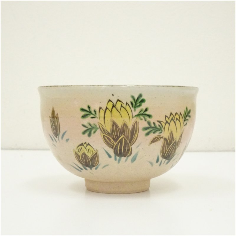 京焼 北川弥三郎(宏幸)造 乾山福寿草茶碗(前大徳 橋本紹尚書付)(共箱)