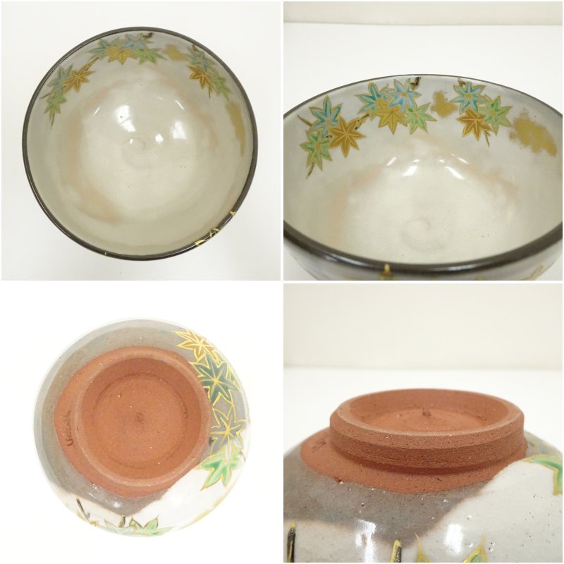 京焼 宮川香雪造 色絵青楓茶碗(共箱)