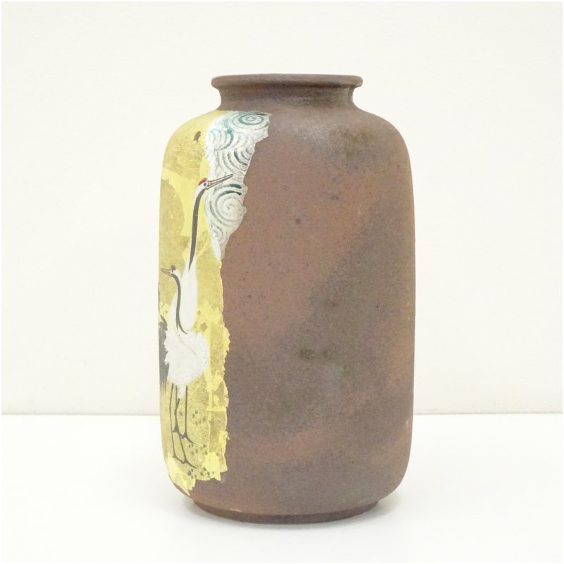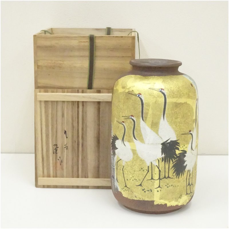 九谷焼 北村隆造 金彩鶴花瓶(共箱)