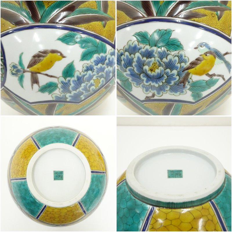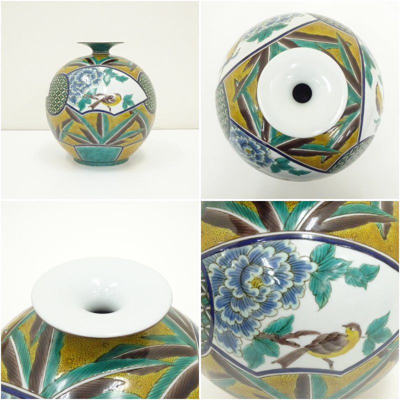 九谷焼 糖川孝之造 吉田屋割取花鳥花瓶(共箱) [13-250707c-020a]