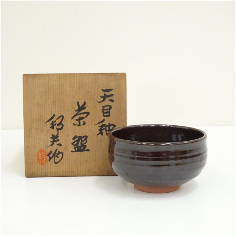 京焼 内田邦夫造 天目釉茶碗(共箱) [13-250707c-025a]
