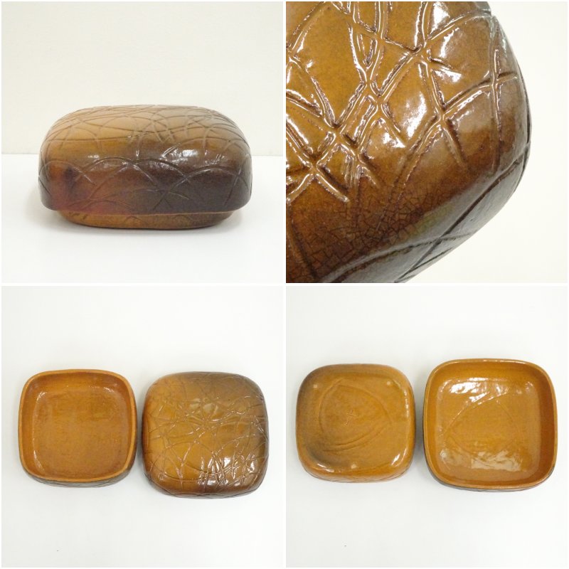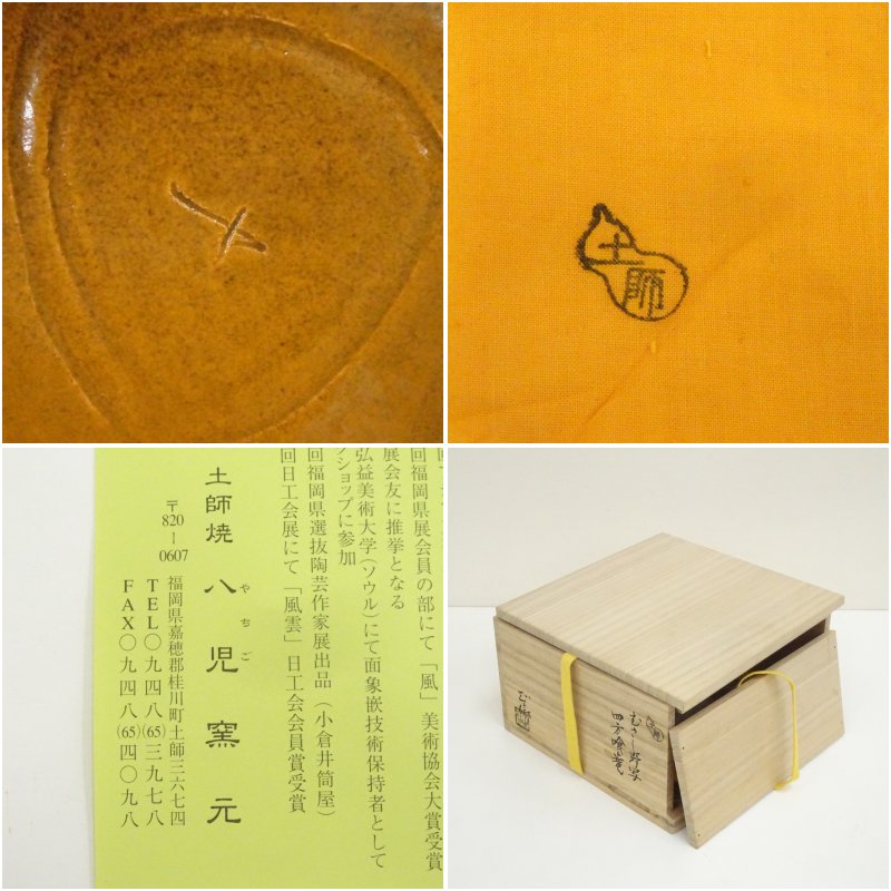 高取焼 八児正信造 武蔵野写四方喰籠(共箱)