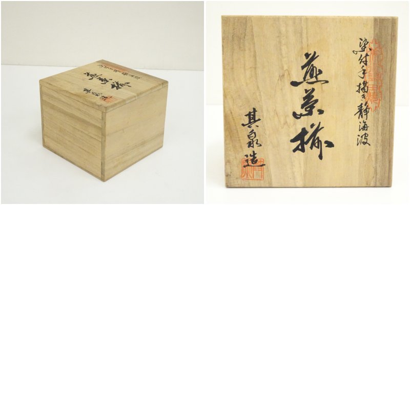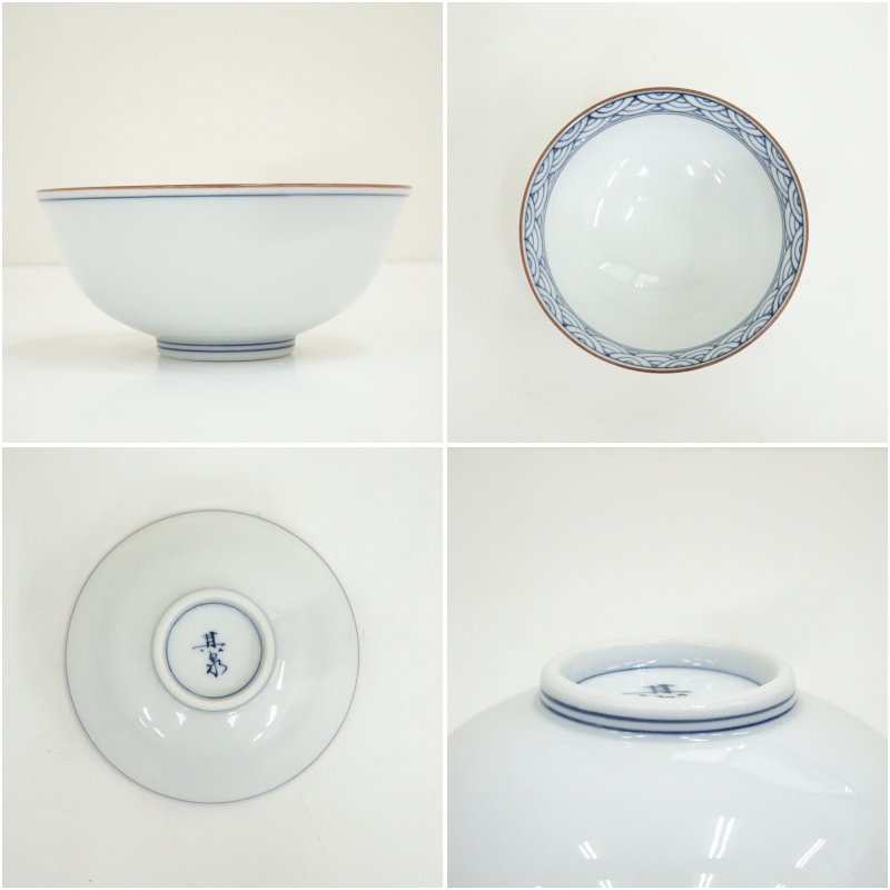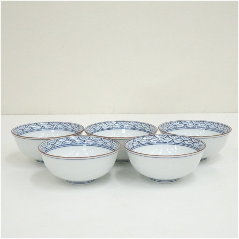 有田焼 其泉窯造 染付手描き青海波煎茶碗揃5客(共箱)