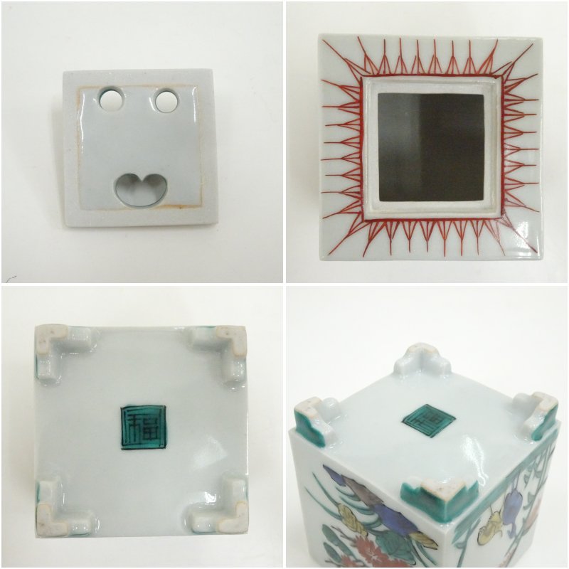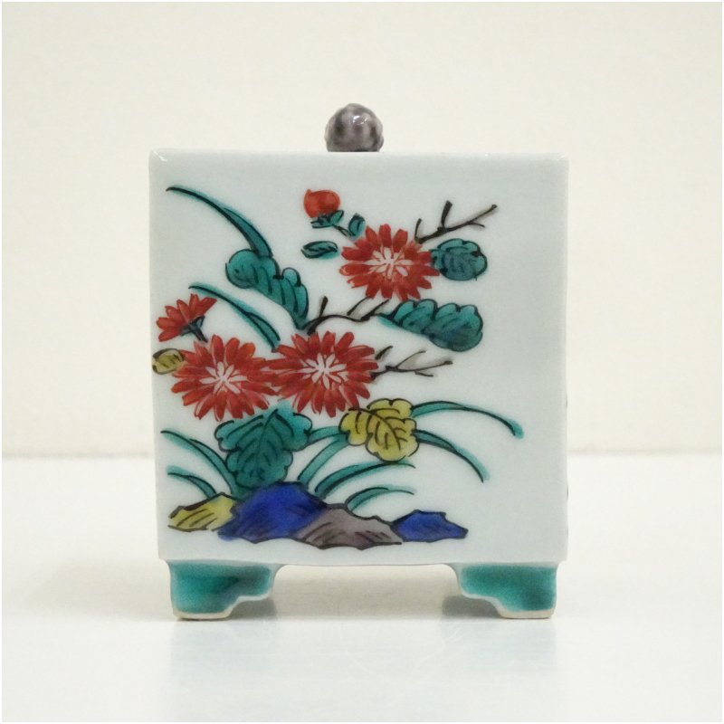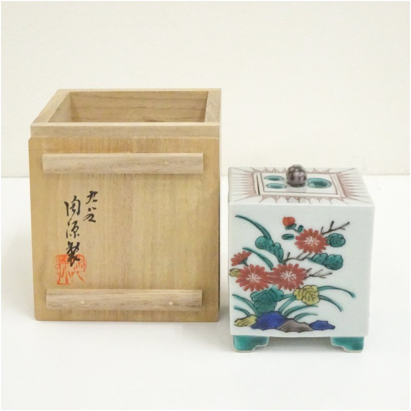 九谷焼 陶源造 各福印 色絵香炉(共箱) [13-250707c-059a]