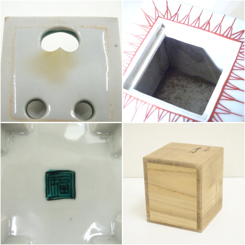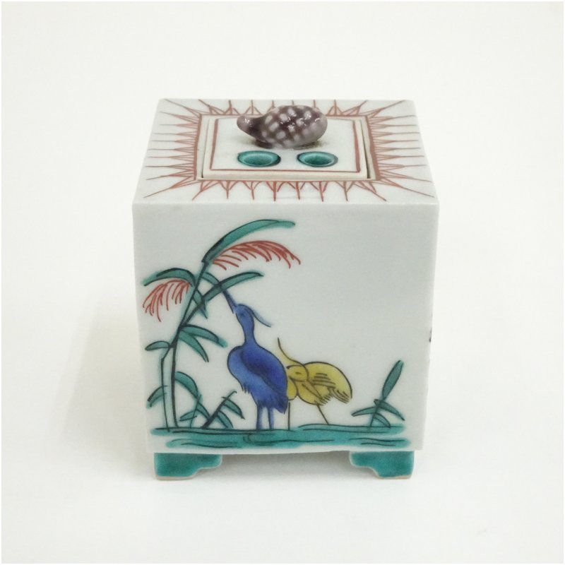 九谷焼 陶源造 各福印 色絵香炉(共箱)