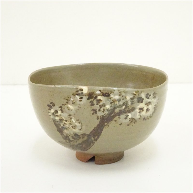 虫明焼 横山香宝造 桜絵茶碗(一楽庵主書付)(共箱) [13-250522c-012a]
