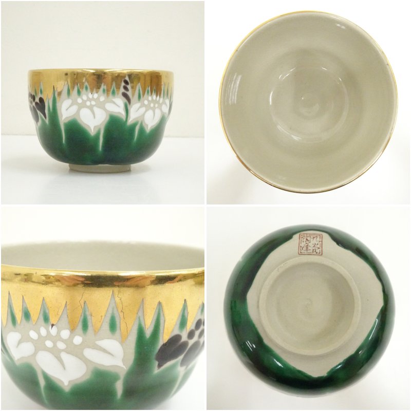 九谷焼 陶峰造 色絵菖蒲茶碗(保護箱)