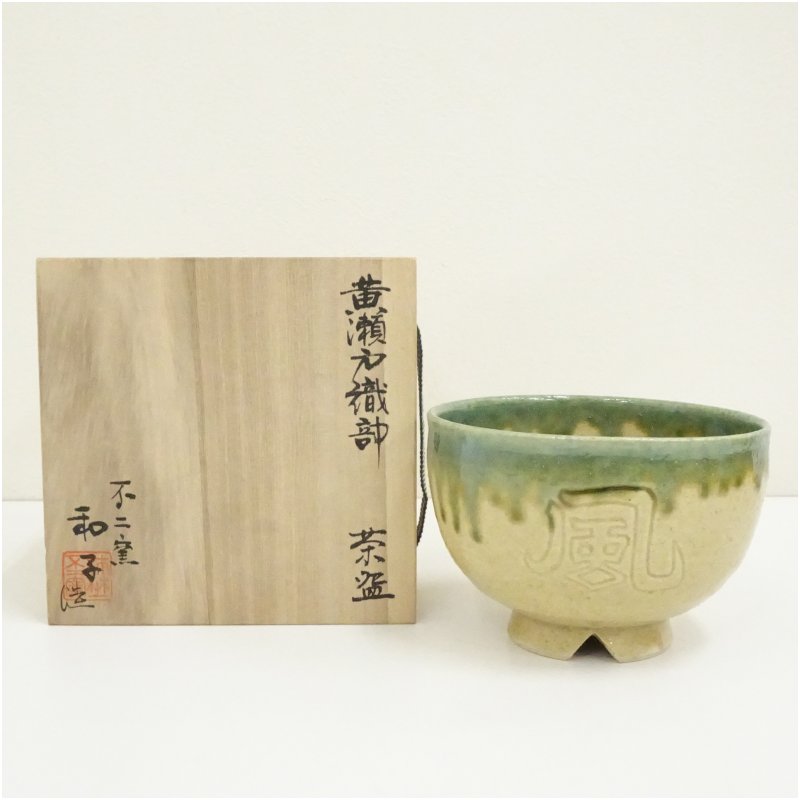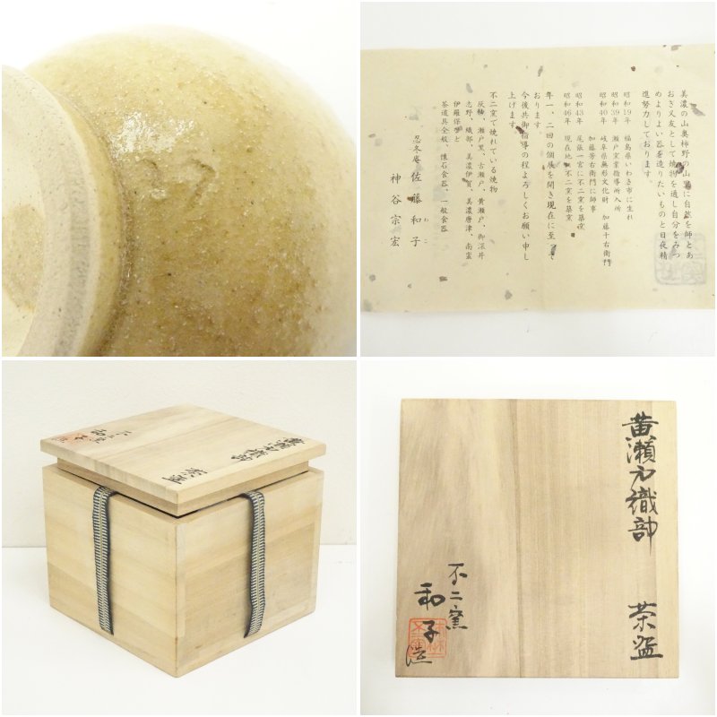 不二窯 佐藤和子造 黄瀬戸織部茶碗(共箱)