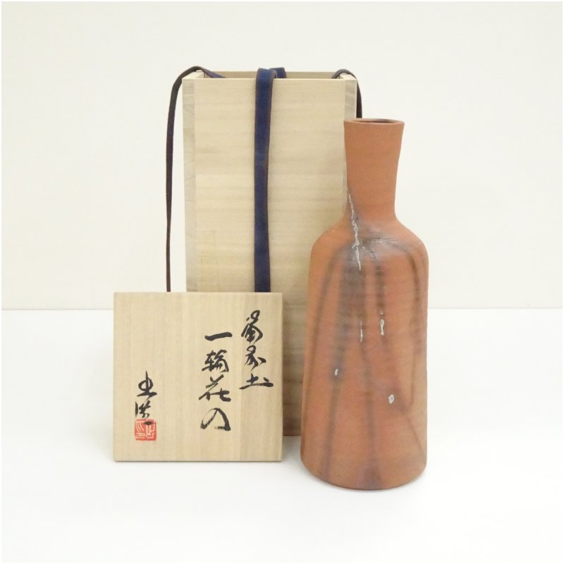 備前焼 山本出造 一輪花入(共箱) [13-250707c-083a]