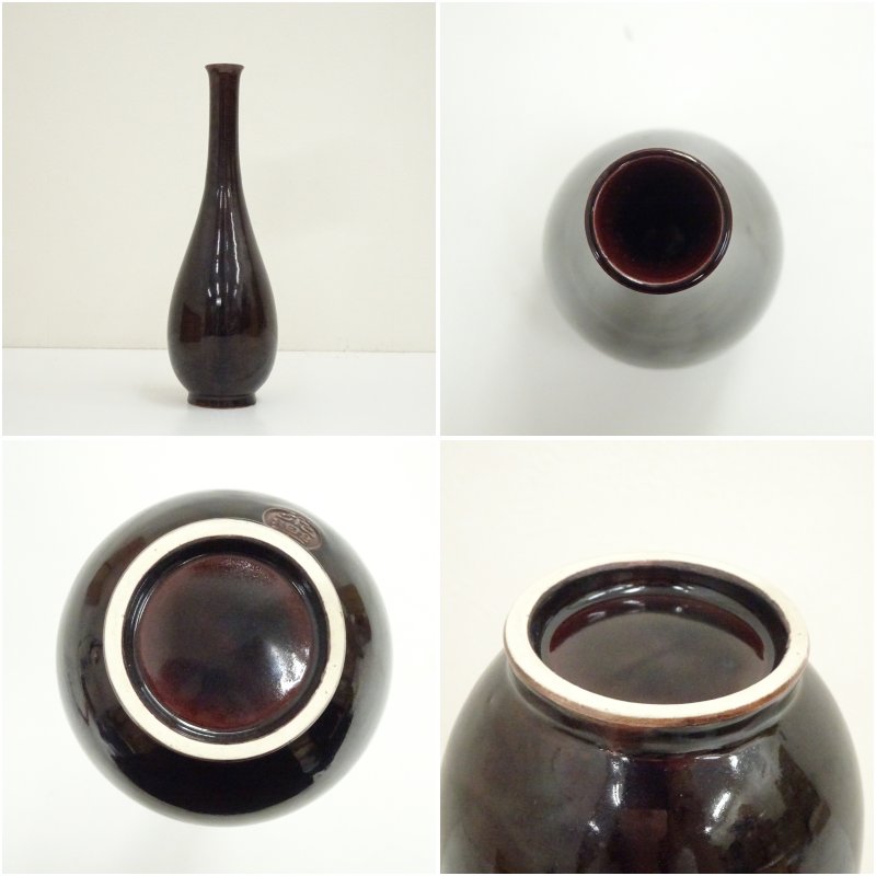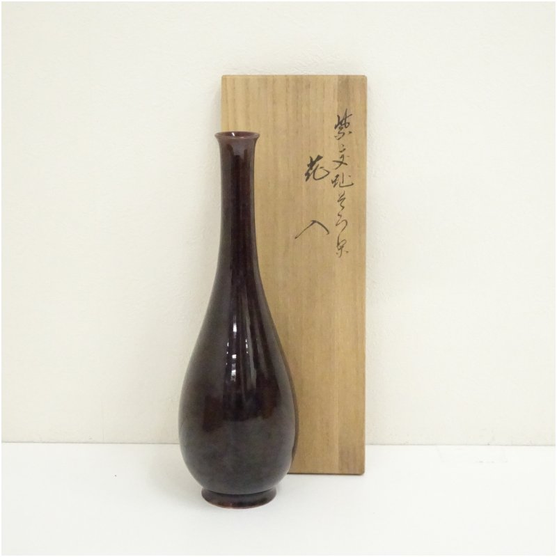 千家十職 永楽善五郎造 紫交趾鶴首花入(共箱) [13-250708c-003a]
