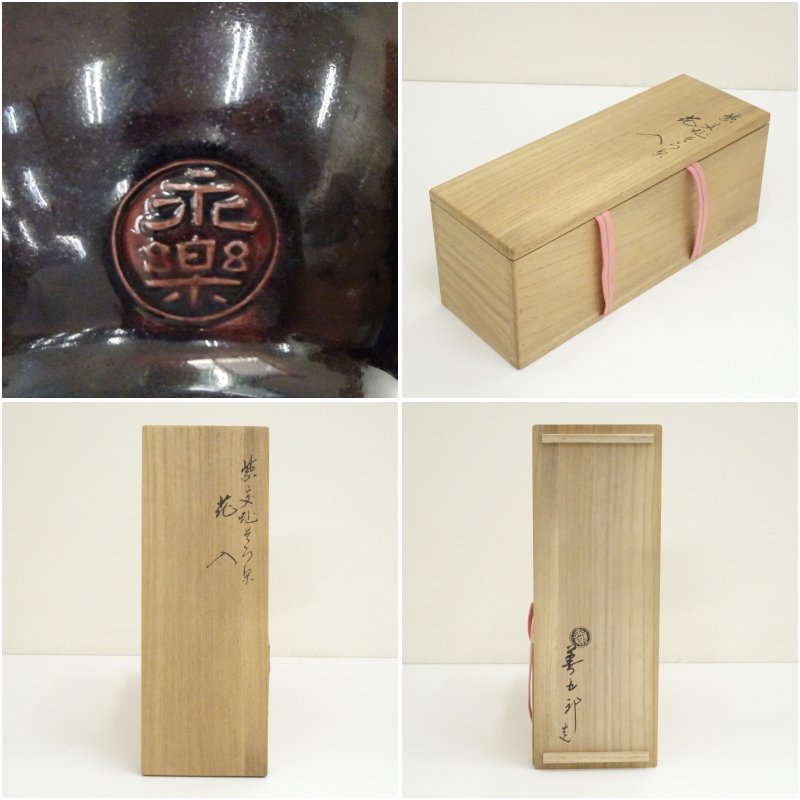 千家十職 永楽善五郎造 紫交趾鶴首花入(共箱)