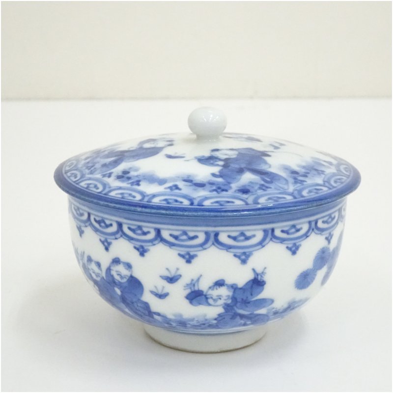 三河内焼 平戸雅松造 染付七人唐子図煎茶碗5客 [13-250708c-017a]