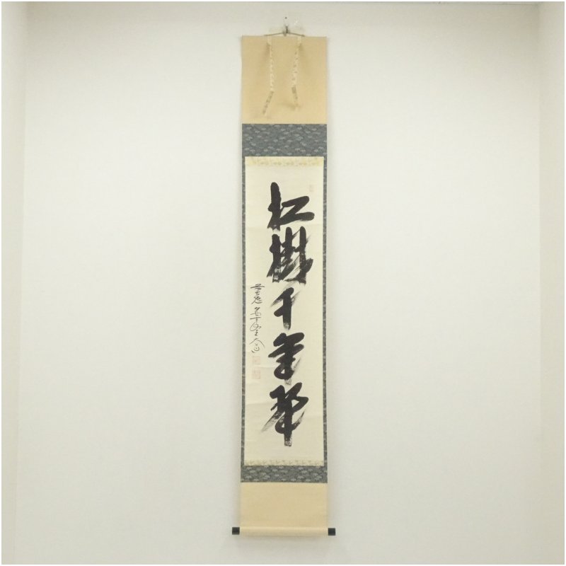 前大徳 西垣大道筆 「松樹千年翠」一行書 肉筆紙本掛軸(共箱) [13-250708c-023a]