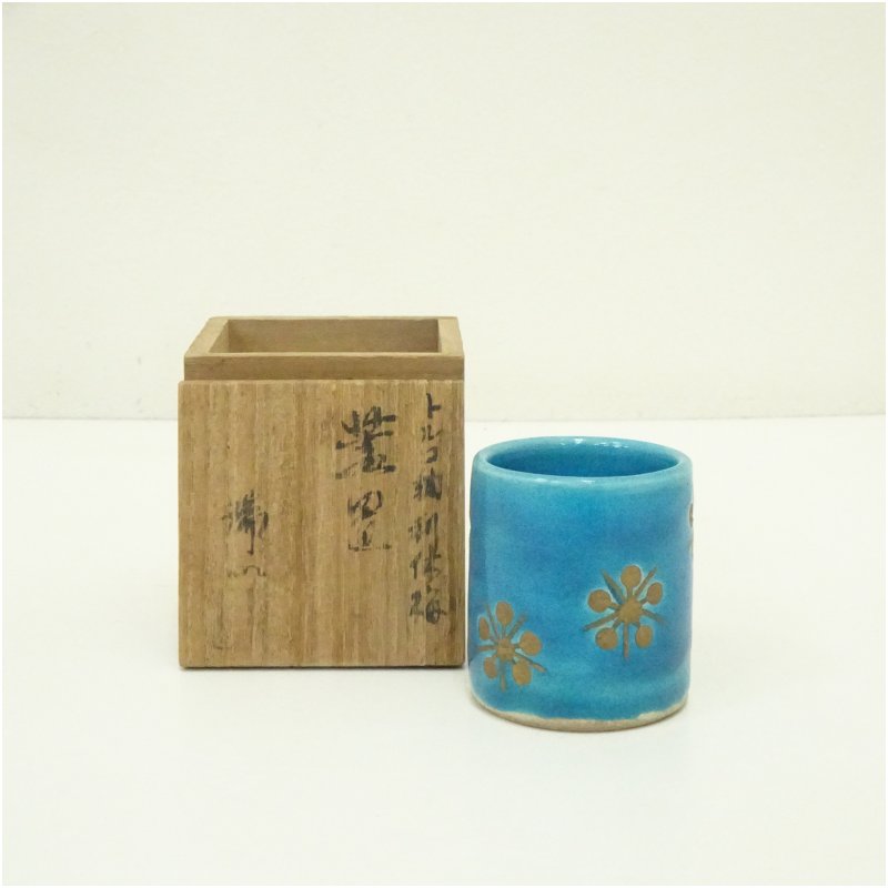 萬古焼 加賀瑞山造 トルコ釉利休梅蓋置(共箱)