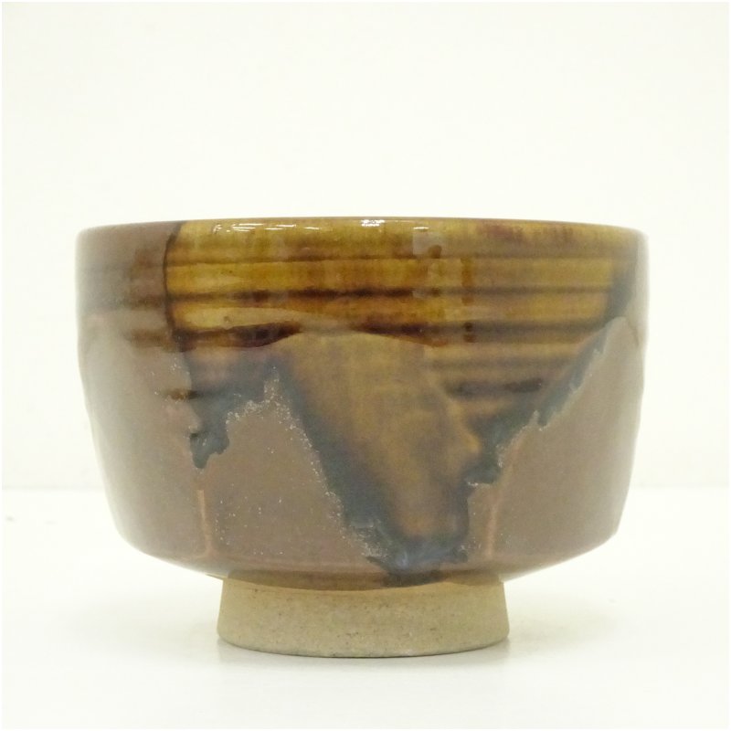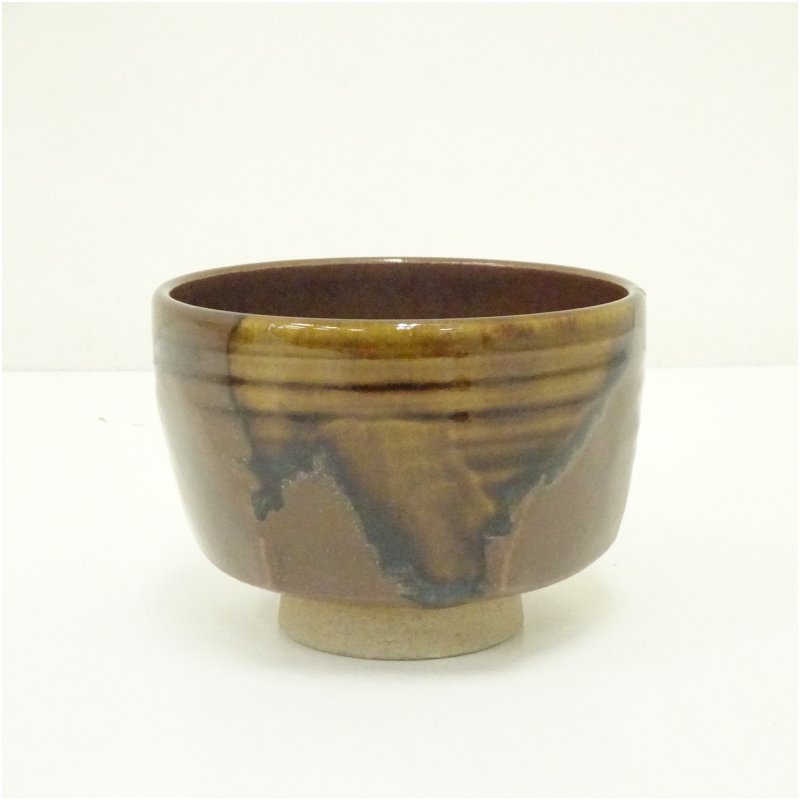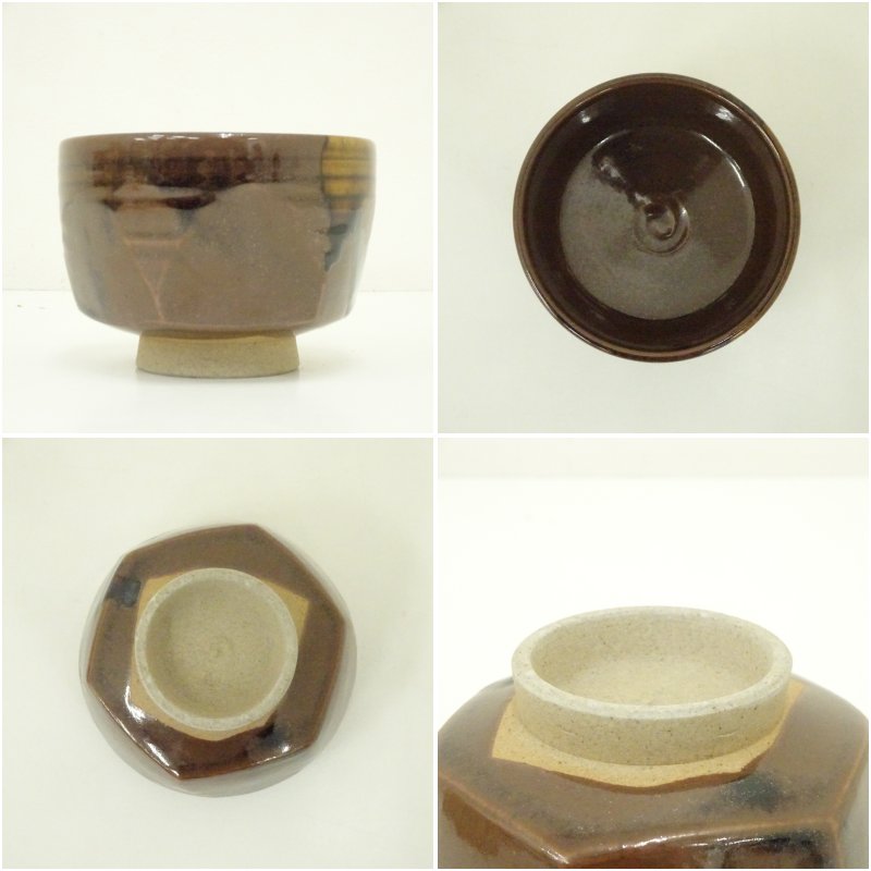 膳所焼 岩崎新定造 面取茶碗(共箱) [13-250708c-042a]
