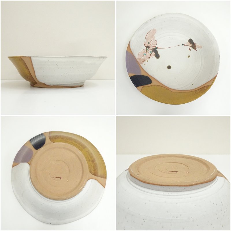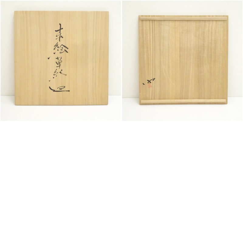 神勝寺焼 藤本明成造 赤絵草紋皿(共箱)