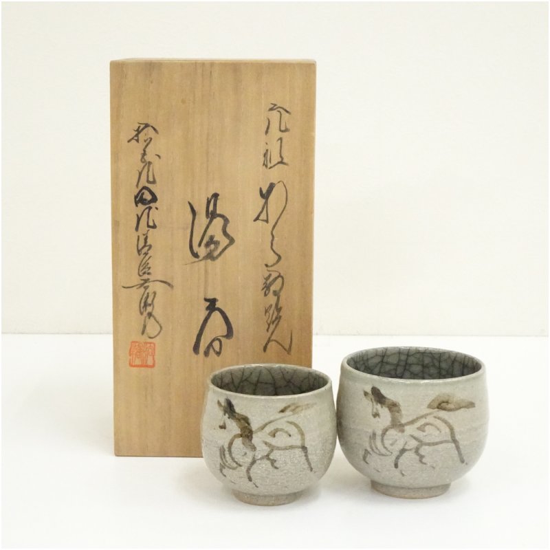 相馬焼 十五世 田代清治右衛門(法橋)造 夫婦湯呑(共箱) [13-250708c-065a]