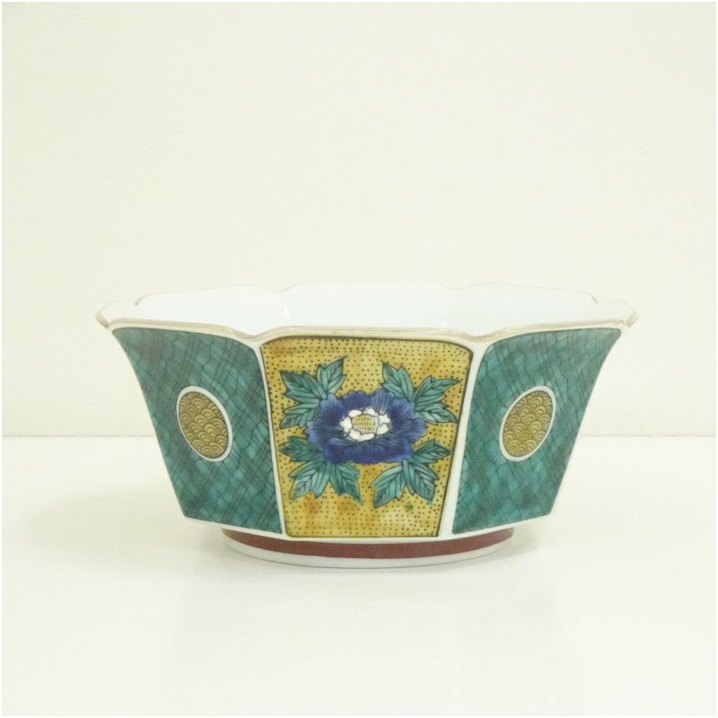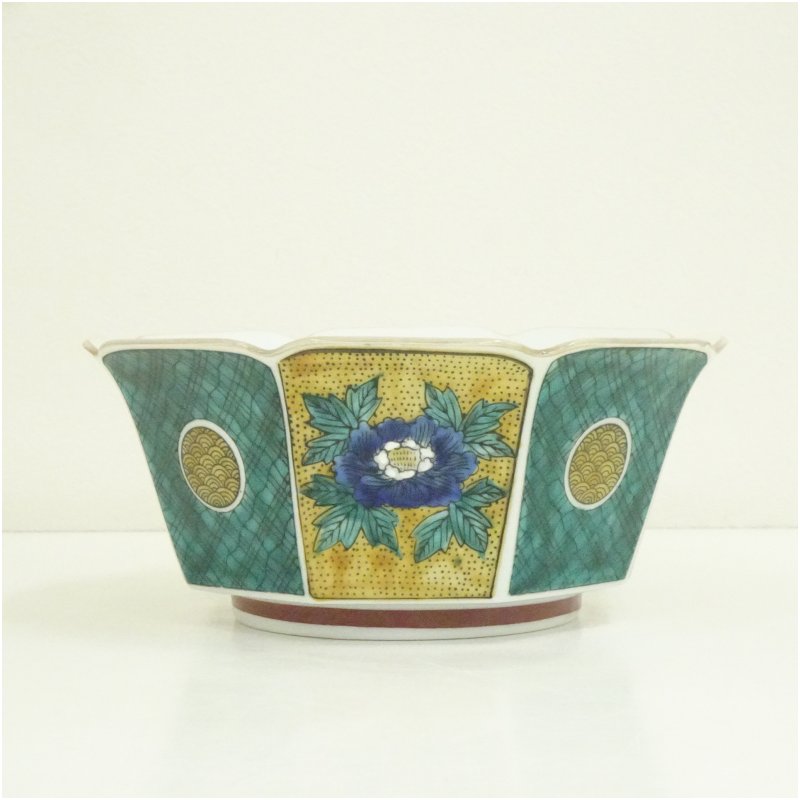 九谷焼 雄山造 色絵牡丹文八角鉢(共箱) [13-250709c-017a]