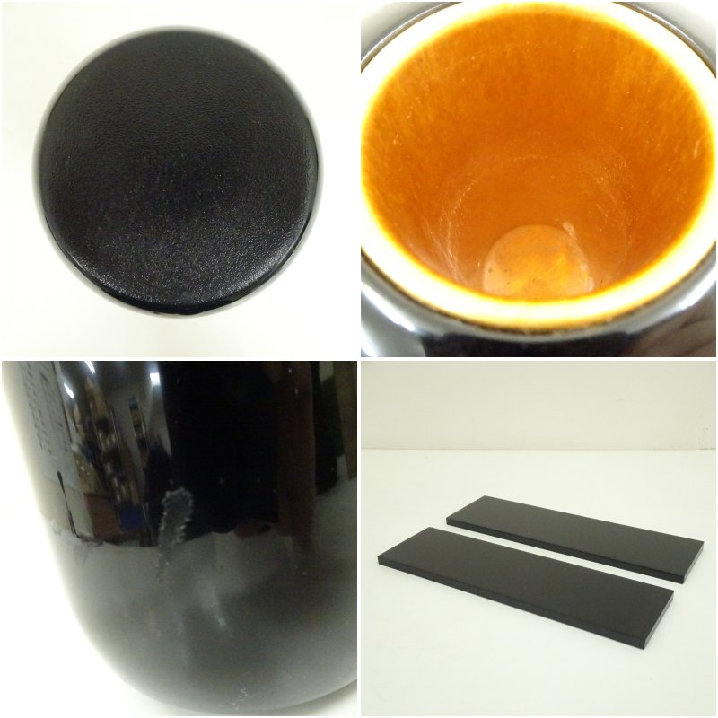 花生の内側に汚れがあります。側面にシール跡があり、粘着が残っています。