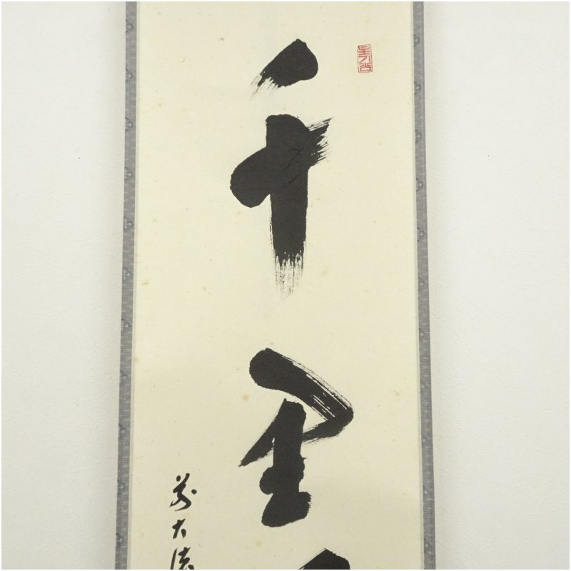 前大徳 福本積應筆 「千里同風」一行書 肉筆紙本掛軸(共箱) [13-250709c-039a]
