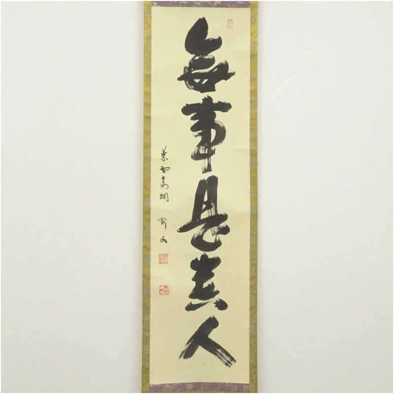 大徳寺 松長剛山筆 「無事是貴人」一行書 肉筆紙本掛軸(共箱)