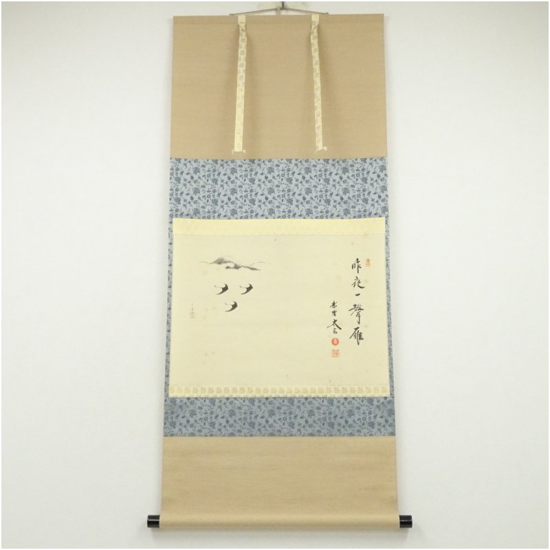 大徳寺 小林太玄筆 「昨夜一聲雁」 宗峯筆 富士に雁画賛 横物 肉筆紙本掛軸(共箱) [13-250710c-021a]