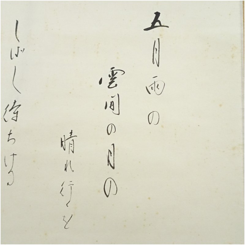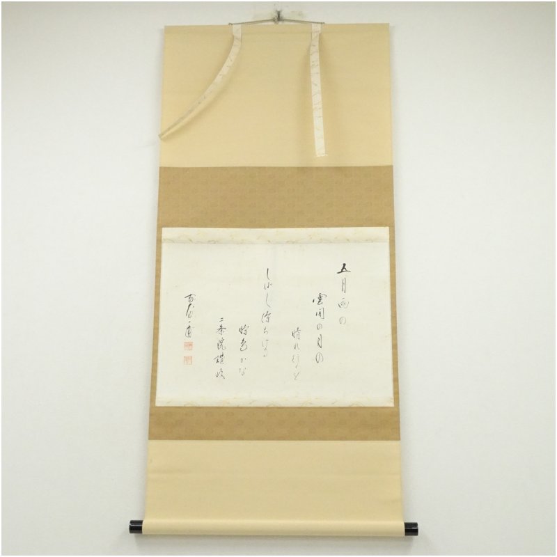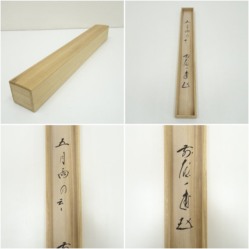 前大徳 矢野一甫筆 二条院讃岐「五月雨を」短歌 横物 肉筆紙本掛軸(共箱) [13-250710c-022a]