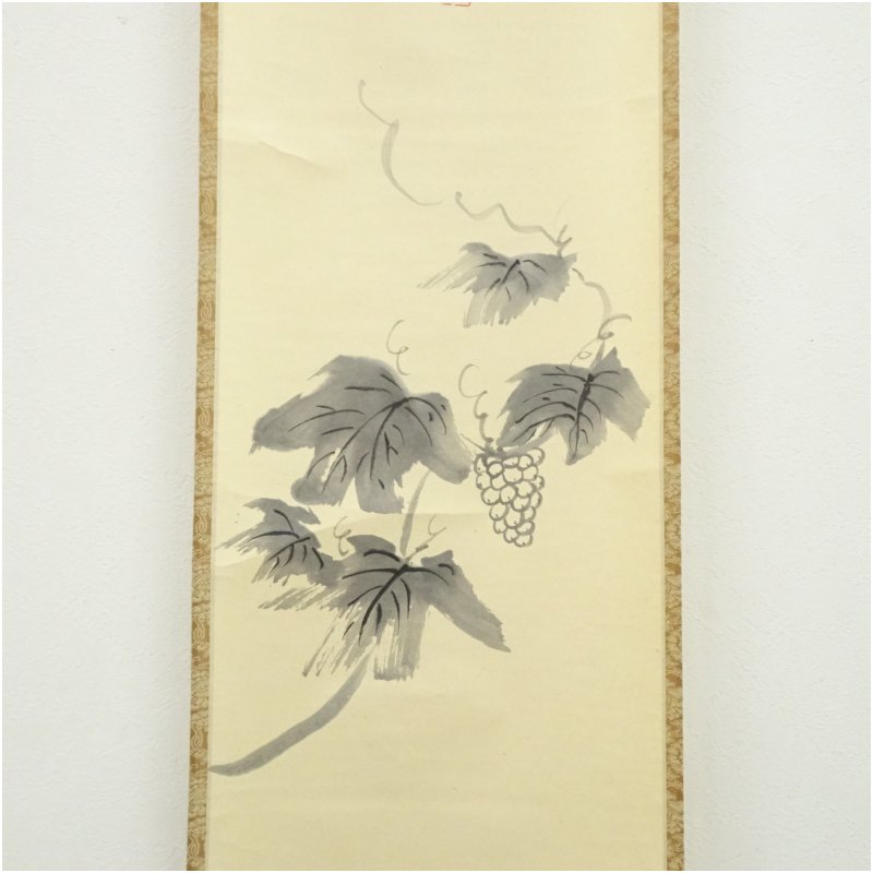 前大徳 大橋香林筆 「清秋香白露」葡萄画賛 肉筆紙本掛軸(共箱) [13-250710c-035a]