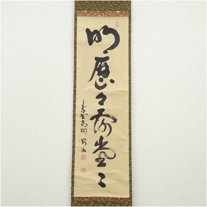 大徳寺 松長剛山筆 「明歴々露堂々」一行書 肉筆紙本掛軸(共箱) [13-250710c-037a]