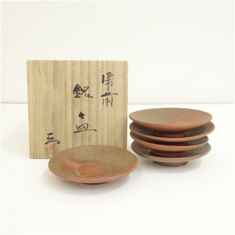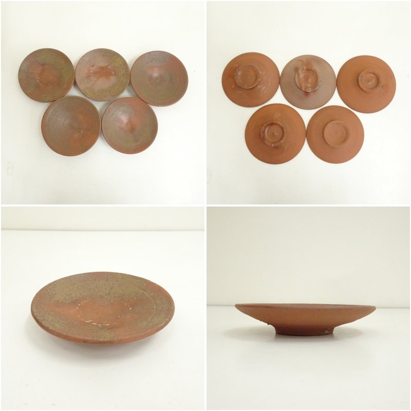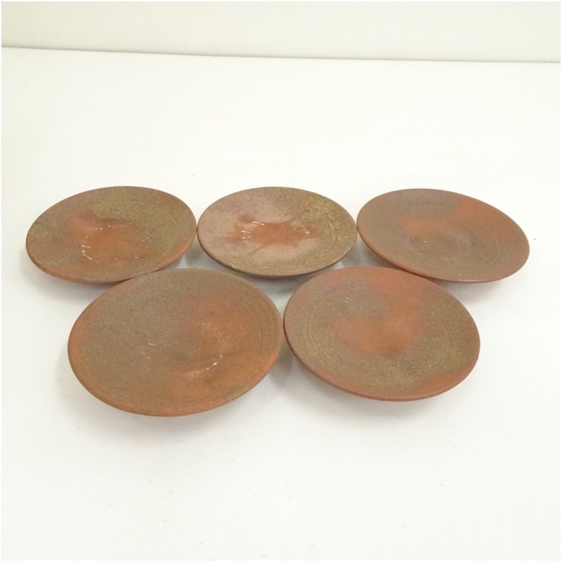備前焼 見附文雄造 銘々皿5客(共箱) [13-250710c-049a]