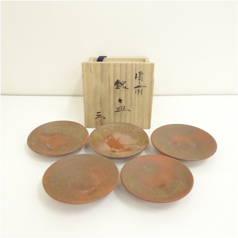 備前焼 見附文雄造 銘々皿5客(共箱)