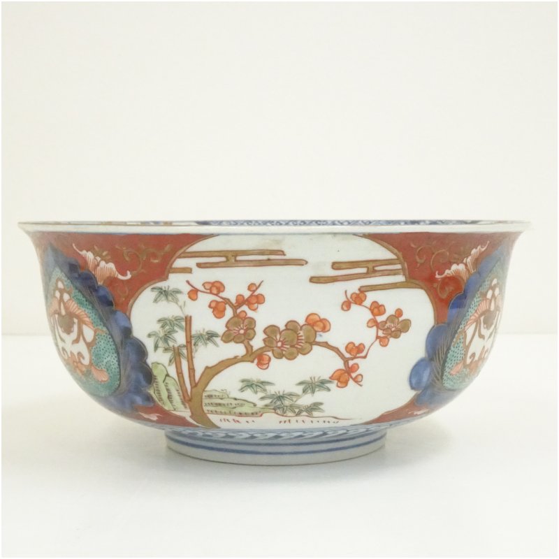 明治期 伊万里焼 錦手梅図鉢 [13-250711c-024a]