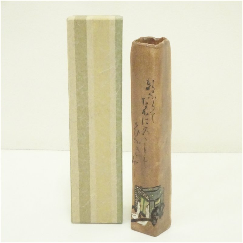尾形乾山造 和歌 御所車画掛花入(箱付)