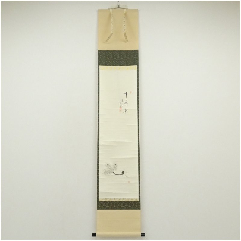前大徳 西垣大道筆 「千年翠」玉泉筆 松画賛 肉筆紙本掛軸(共箱) [13-250714c-004a]