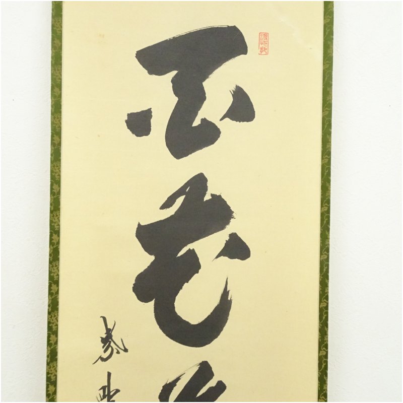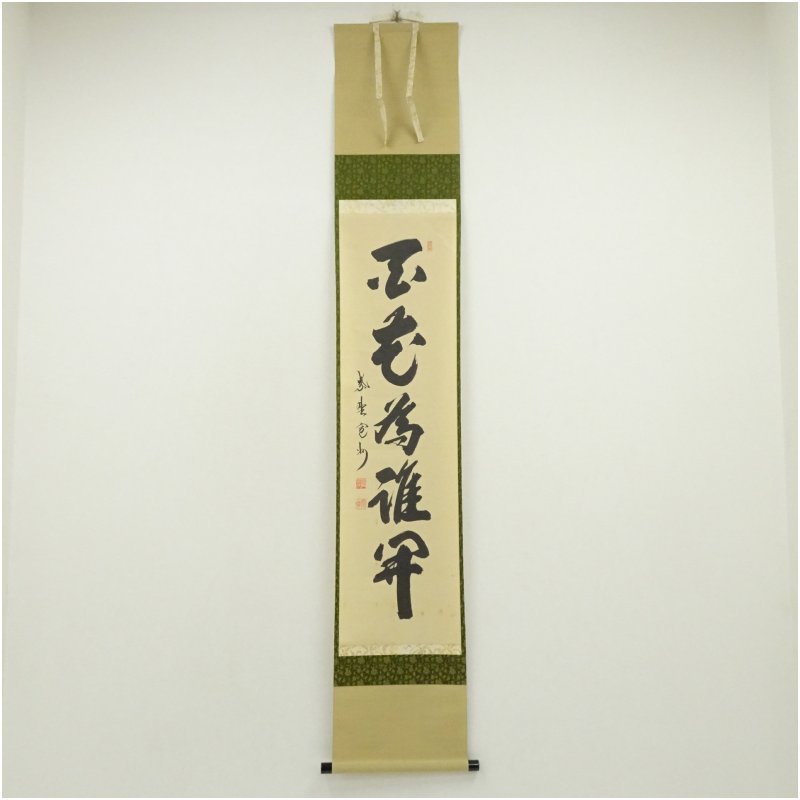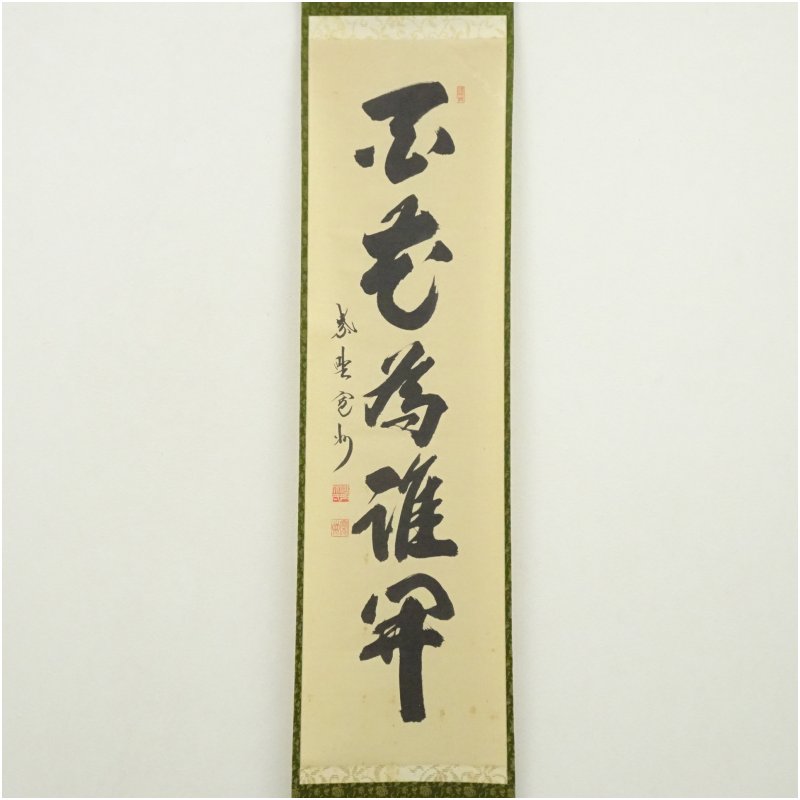 大徳寺 長谷川寛州筆 「百花為誰開」一行書 肉筆紙本掛軸(共箱)
