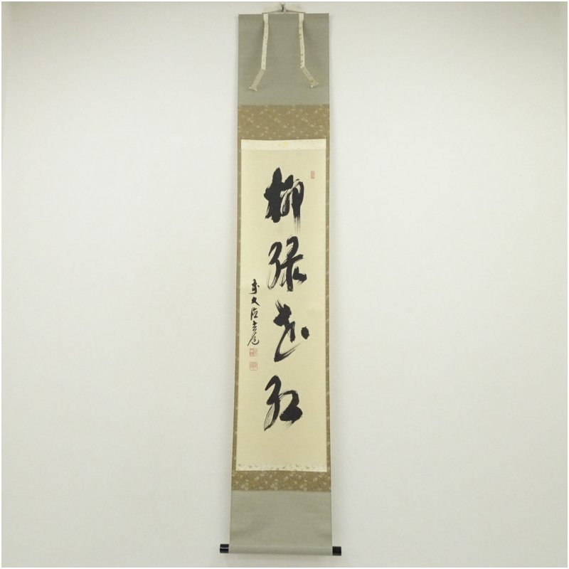 前大徳 須賀玄道筆 「柳緑花紅」一行書 肉筆紙本掛軸(共箱) [13-250714c-025a]