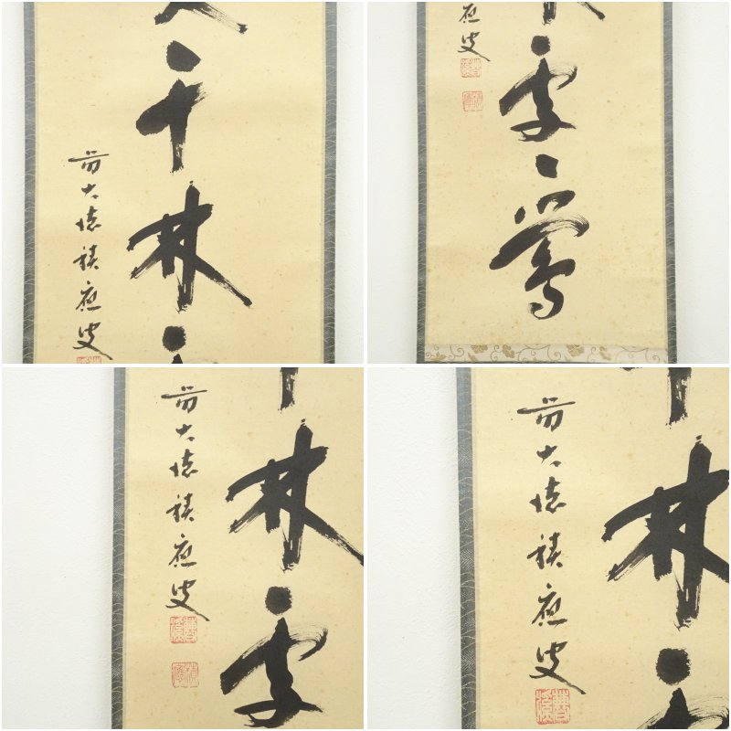 前大徳 福本積應筆 「春入千林處々鶯」一行書 肉筆紙本掛軸(共箱) [13-250714c-034a]