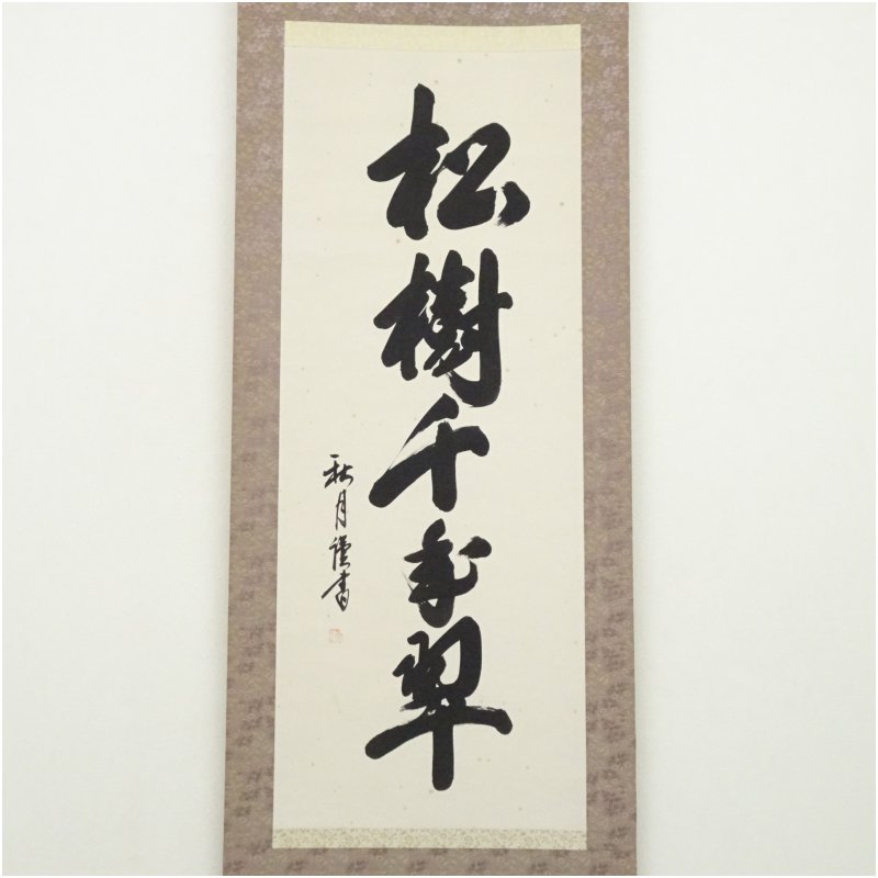秋月筆 「松樹千年翠」一行書 肉筆紙本掛軸 [13-250715c-023a]