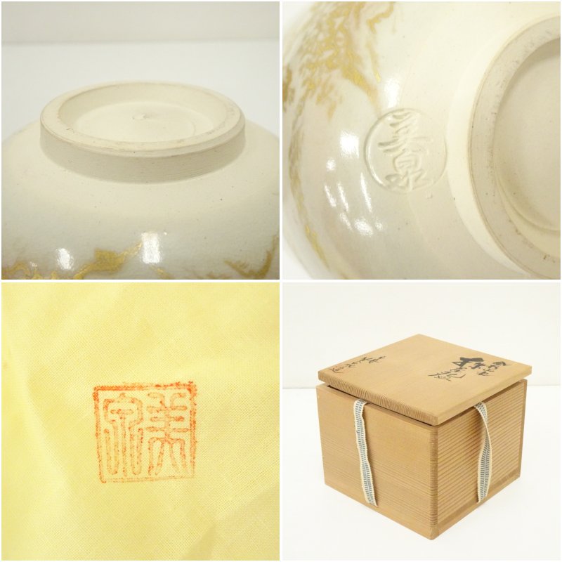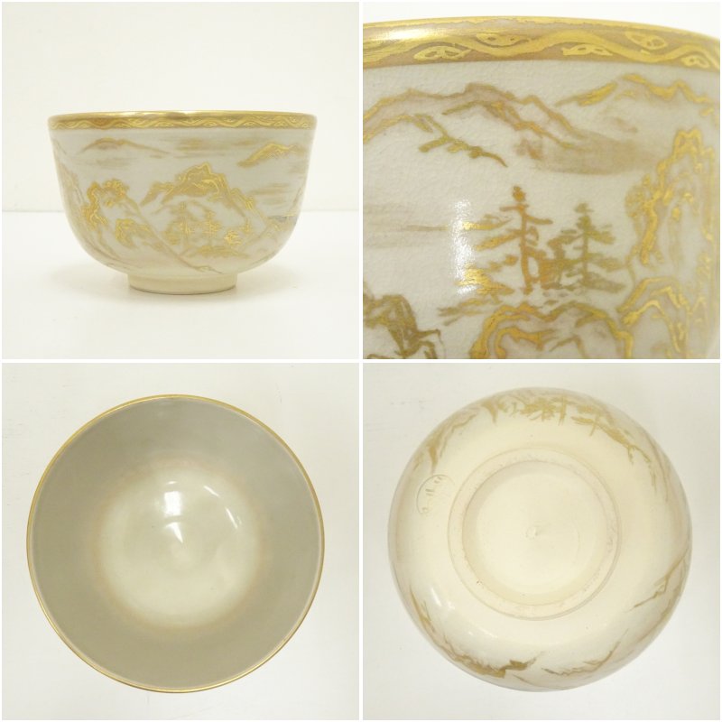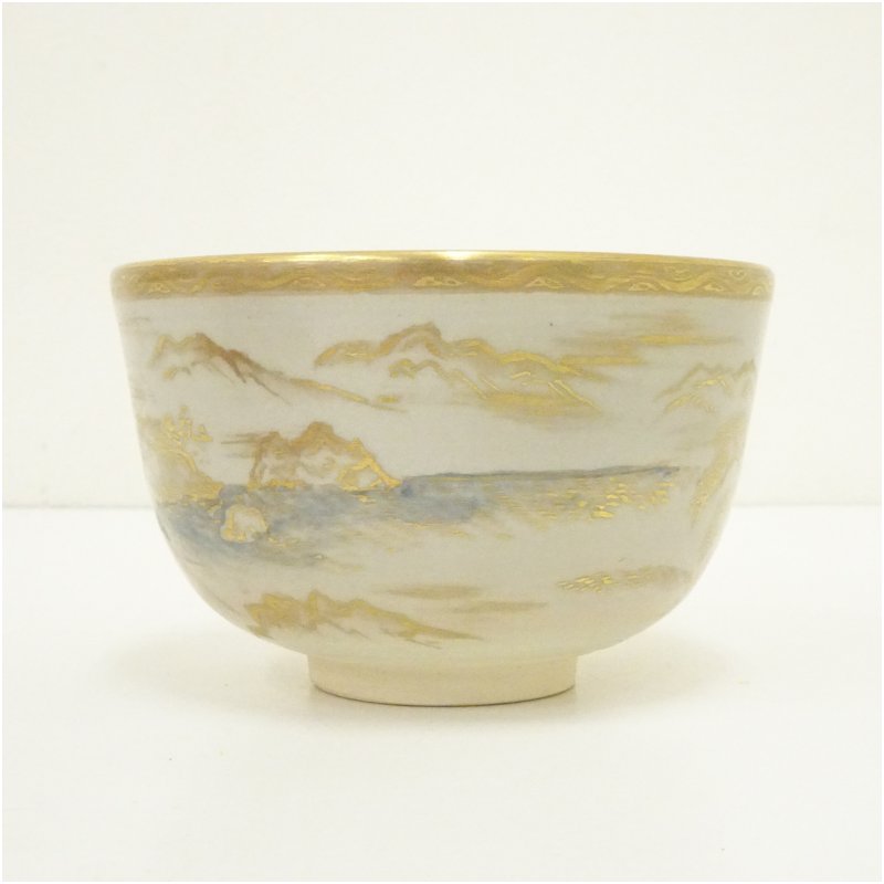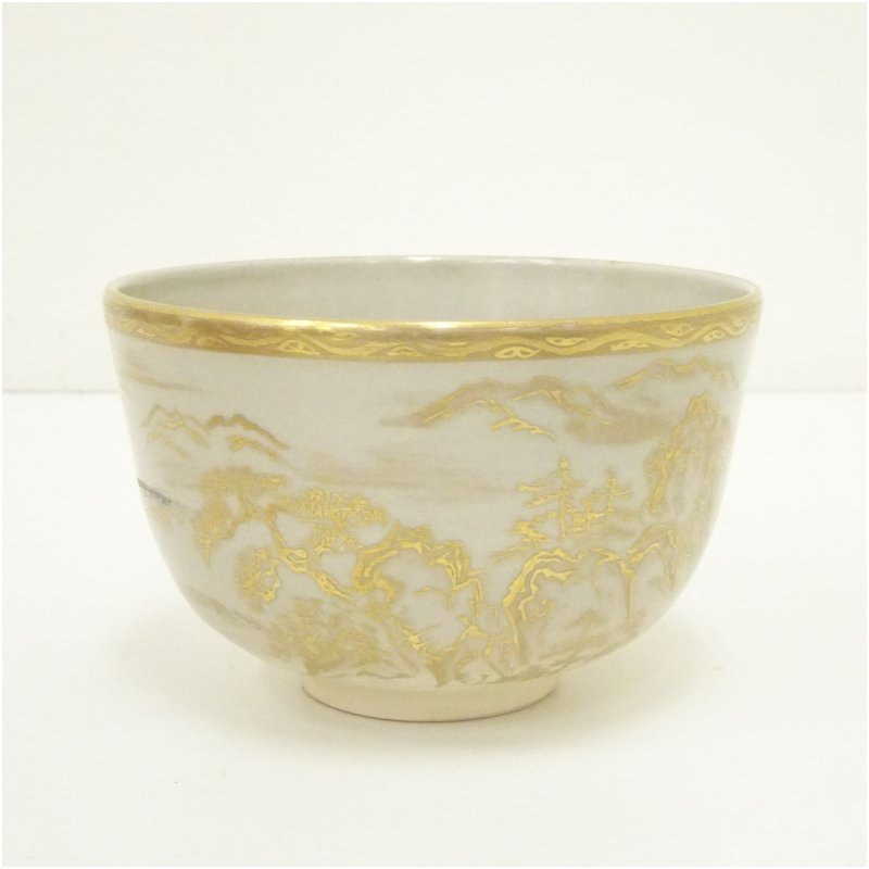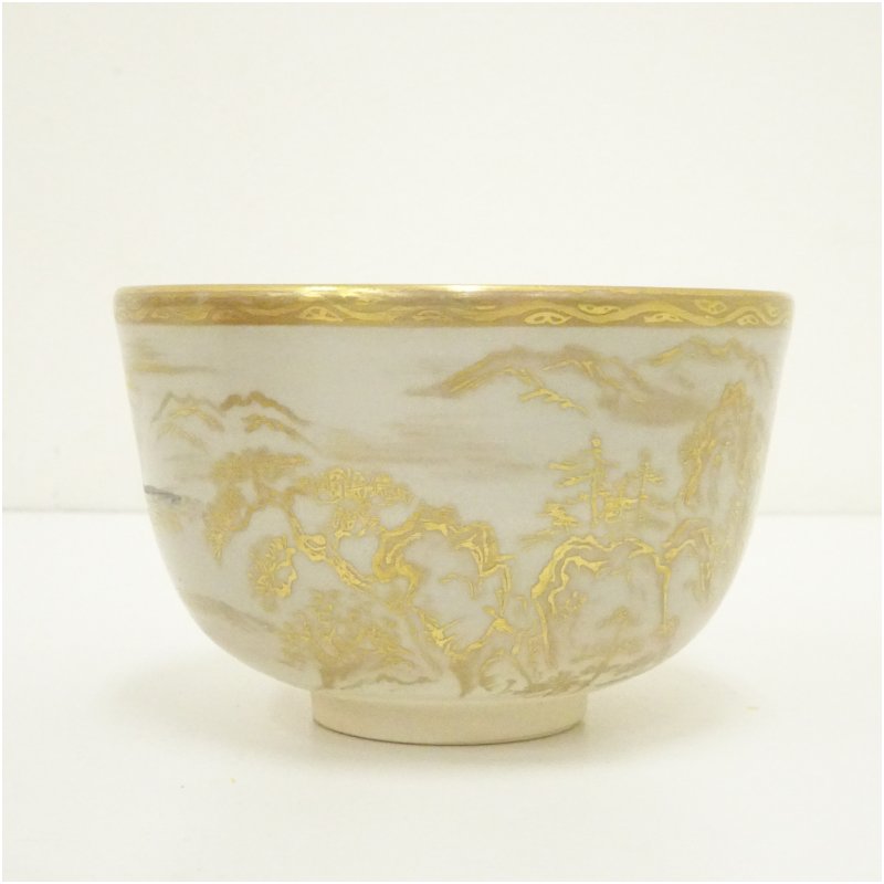 京焼 美泉造 金彩山水茶碗(共箱) [13-250603c-002a]