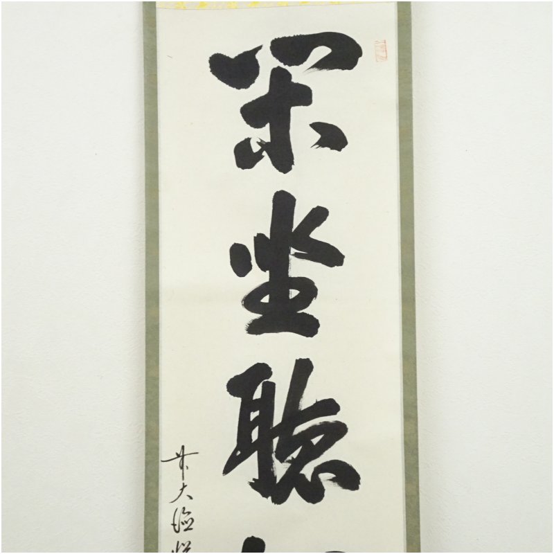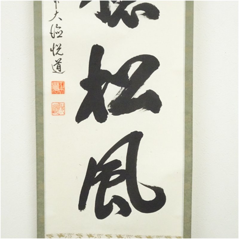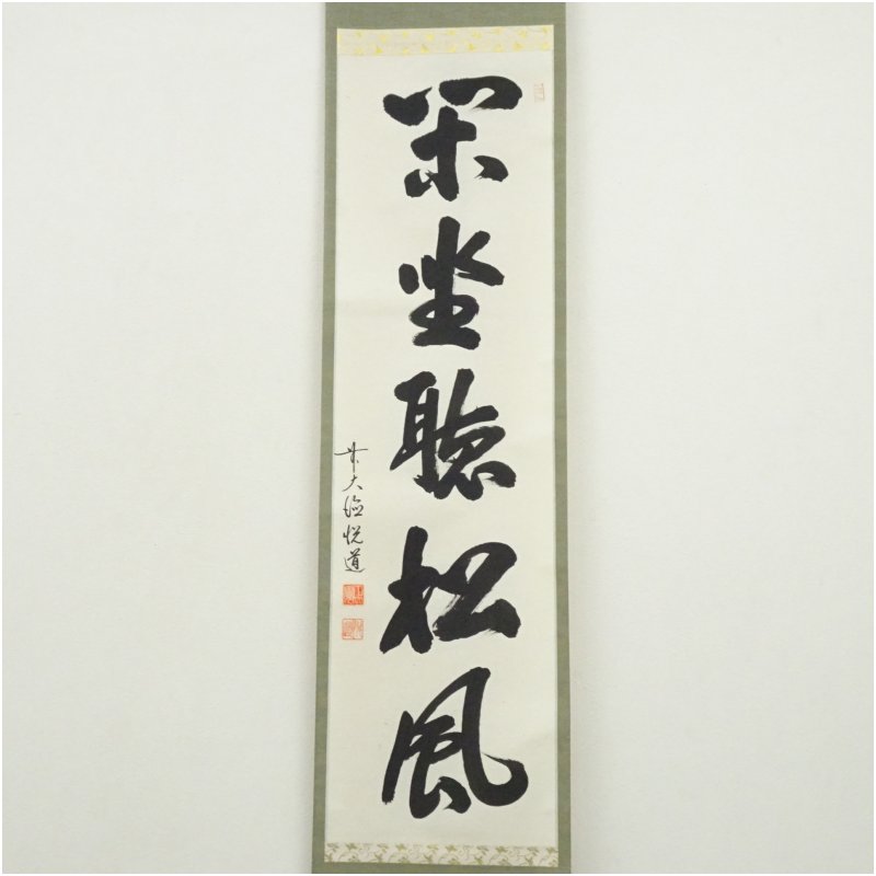 前大徳 高橋悦道筆 「閑坐聴松風」一行書 肉筆紙本掛軸(保護箱) [13-250715c-029a]
